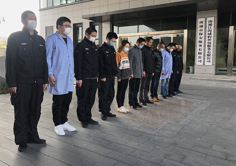4月4日上午10時(shí),伴隨著防空警報(bào)的鳴響,汽車、火車的鳴笛聲,公司本部值班、值守人員在當(dāng)日帶班領(lǐng)導(dǎo)總支副書記、副董事長錢大年的帶領(lǐng)下,在辦公綜合樓前舉行了集體哀悼?jī)x式,沉痛哀悼在抗擊新冠肺炎疫情斗爭(zhēng)中犧牲烈士和逝世同胞。儀式上,大家以集體默哀三分鐘的方式,向逝者表達(dá)了最深切的懷念之情?!?br />