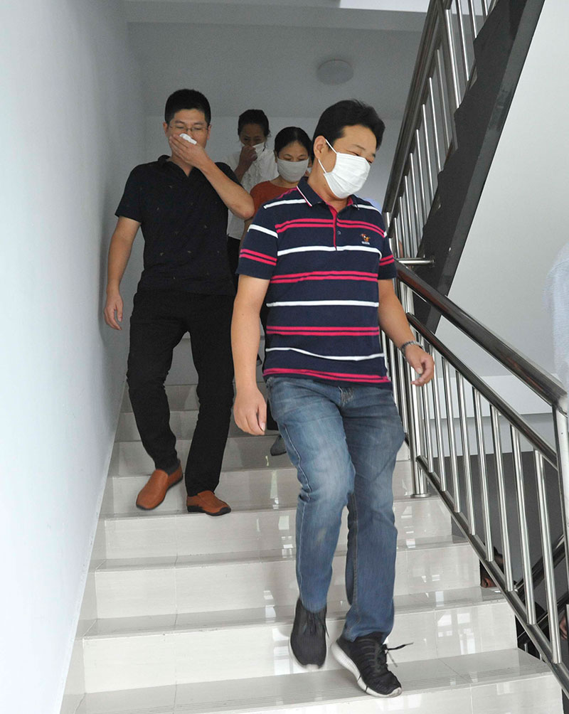 演練中,隨著總指揮指令下達(dá),消防警報響起,樓內(nèi)所有工作人員迅速、有序撤離,以最快的速度全部疏散至安全區(qū)域。