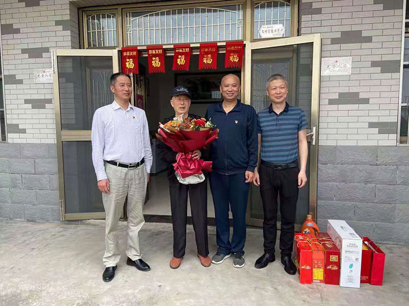 百年奮斗史,揚帆新征程。為弘揚黨的光榮傳統(tǒng)和優(yōu)良作風,圍繞“學黨史 悟思想 辦實事 開新局”,進一步傳承紅色基因,保安公司開展“尋訪英雄足跡 慰問革命老戰(zhàn)士”活動,彰顯國有企業(yè)的家國情懷。5月17日公司黨總支副書記錢大年帶領公司各支部黨員代表前往如東縣大豫鎮(zhèn)大豫社區(qū),在社區(qū)黨委書記施春華的陪同下來到老戰(zhàn)士、老黨員周金才家中,送上了保安公司全體黨員的慰問和敬意。