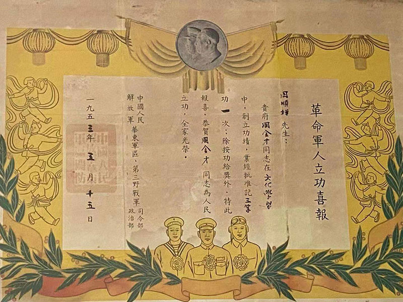 周金才老人參加過渡江戰(zhàn)役、抗美援朝,現(xiàn)在老家安享晚年。大家與老戰(zhàn)士親切交談,詢問他的身體和生活情況,聆聽他參加渡江戰(zhàn)役、抗美援朝的艱苦歷程,在榮譽證書和勛章前共同追憶了那段崢嶸歲月。在場黨員同志們深感黨的光榮偉大和革命戰(zhàn)士的英勇忠誠。