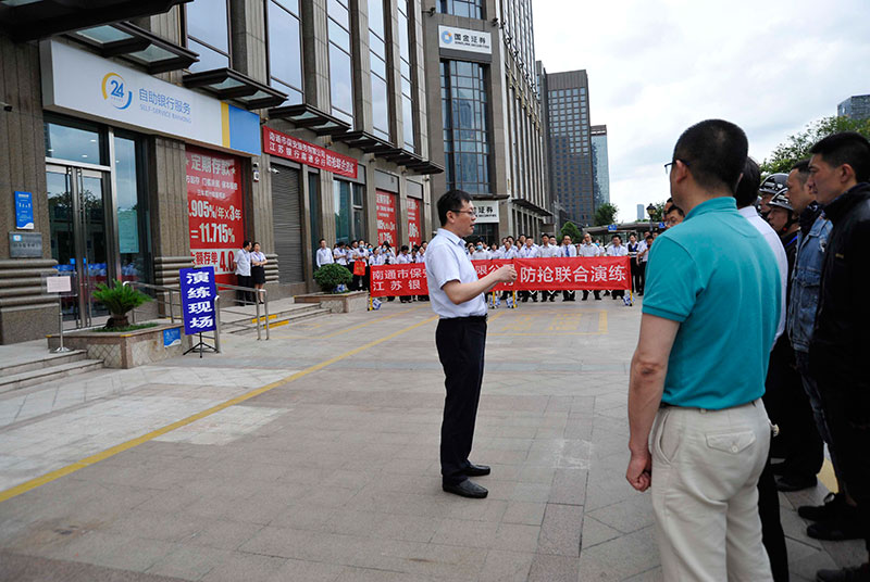 保安公司聯(lián)合江蘇銀行南通分行開展防搶聯(lián)合演習(xí)活動(dòng)